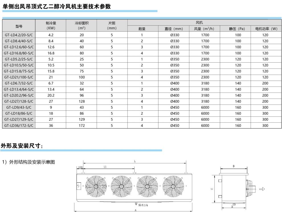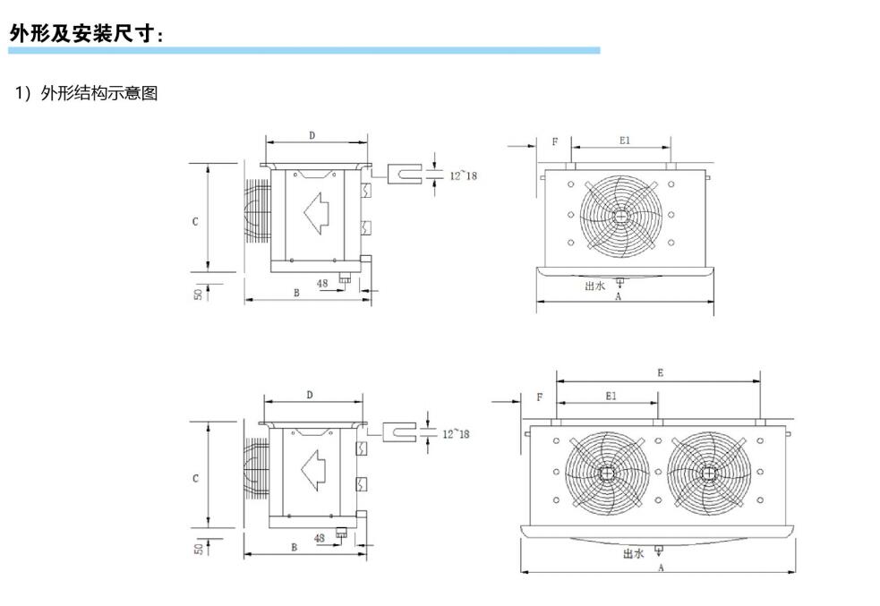 2) 采用的風機防潮濕、郵低溫,全一個讓能工以工,地少助時間短、效果好 3)采用不銹鋼管組成的電熱融霜系統(tǒng),電熱管直接插入盤管內(nèi),